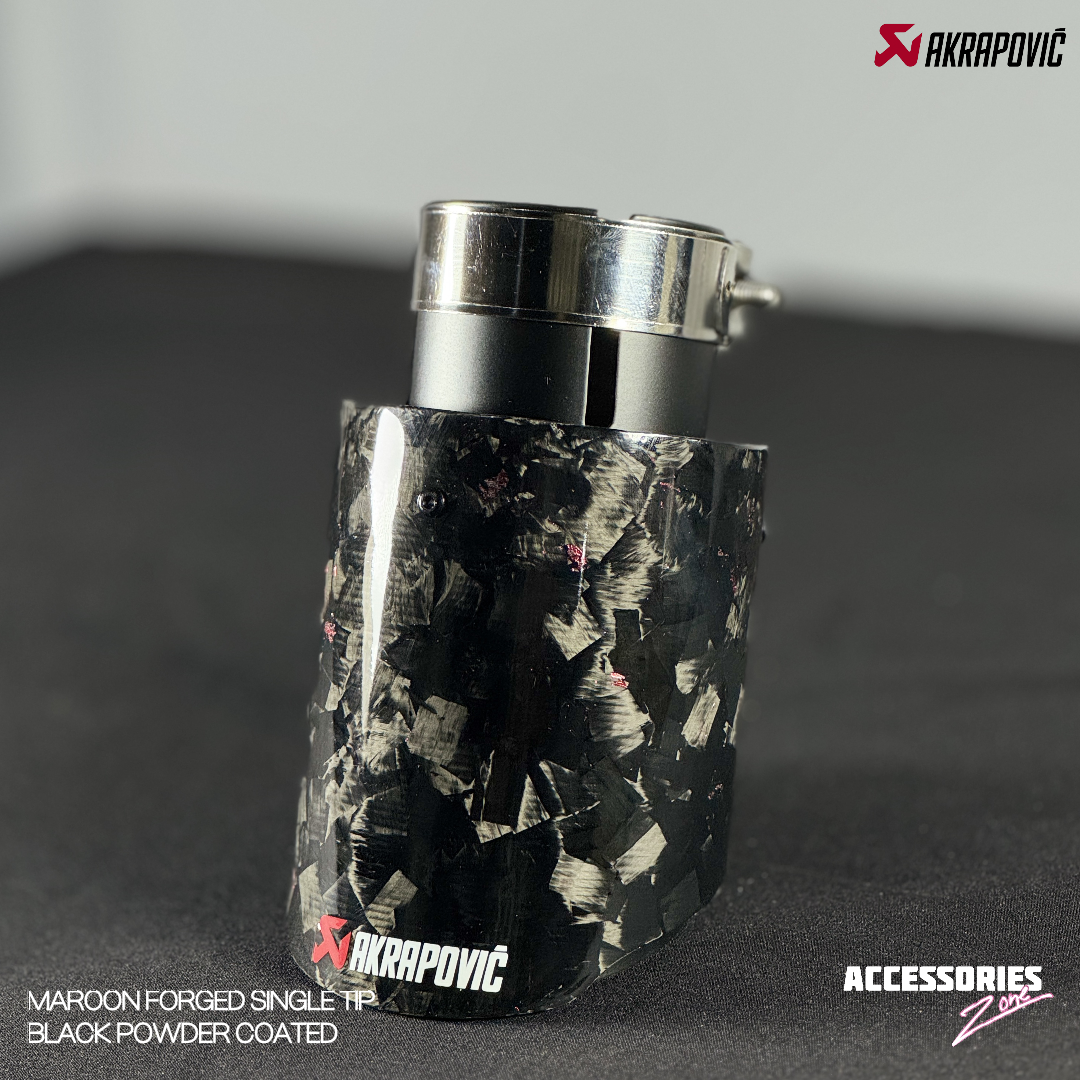 Crafted from premium black powder coated stainless steel and lightweight gloss red forged carbon fiber, this exhaust tip is designed to combine durability with style. The high-grade stainless steel ensures long-lasting performance and resistance to corrosion, while the carbon fiber finish adds a sleek, modern edge that instantly elevates the vehicle’s appearance. Beyond its striking aesthetics, the lightweight construction helps maintain efficiency, making it not just a visual upgrade but also a smart performance choice for enthusiasts who demand both form and function.